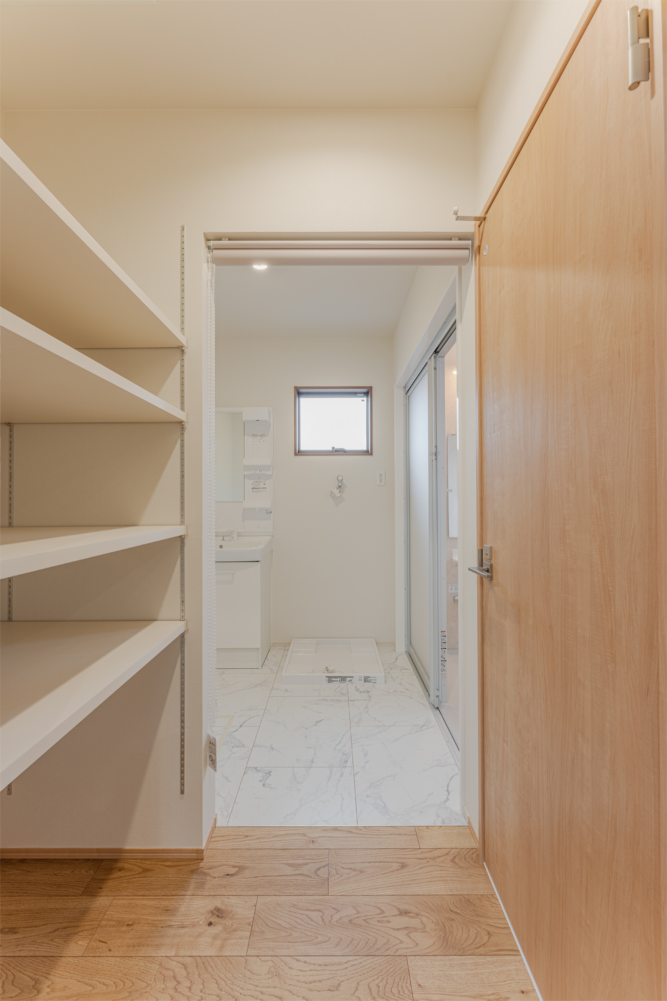 リビング側と脱衣室側の両方から出入りできるため、動線もスムーズです。